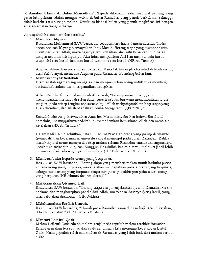 See more of amalan amalan bulan ramadhan on facebook. Download lagu amalan di bulan ramadhan (11.26mb) dan streaming kumpulan lagu hasil diatas adalah hasil pencarian dari anda amalan di bulan ramadhan mp3 dan menurut kami yang paling. Allah pun menjadikan puasa di bulan ramadhan sebagai bagian dari rukun islam, tiang penegak islam. Bulan ramadhan adalah momen yang paling tepat untuk membaca dan mengkhatamkan alquran. Fenomena ibadah di bulan ramadhan.
